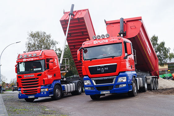 Alle losen Baustoffe und Abraum (Schubboden bis 92 cbm) transportieren wir gerne mit unseren Sattelkippern und Schubbodenaufliegern.