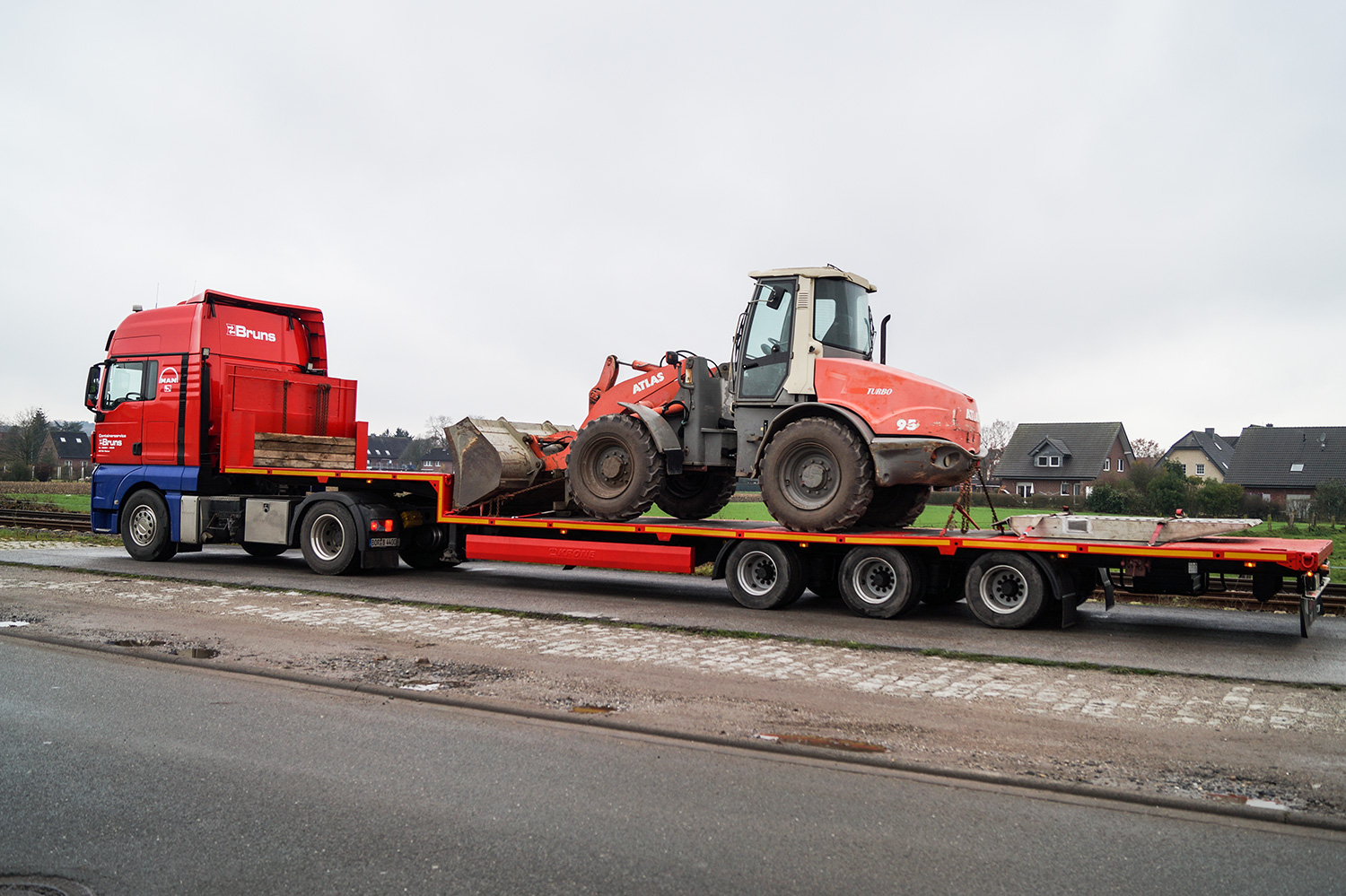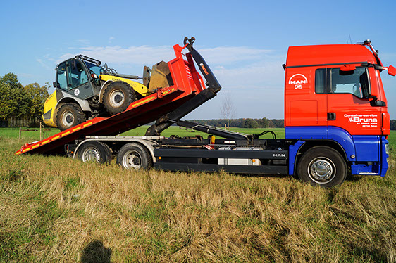Großvolumige und schwere Güter und Bauteile bzw. Stapler/Maschinen transportieren wir kompetent und zuverlässig mit unseren Tiefladern.