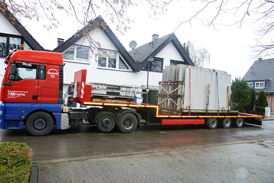 Große und sperrige Güter bis zu einer Gesamtbreite von 3 m und einer Gesamtlänge von 16 m transportieren wir auf Wunsch schnell und flexibel mit unseren Langgutaufliegern. (Ausnahmegenehmigung liegt vor).